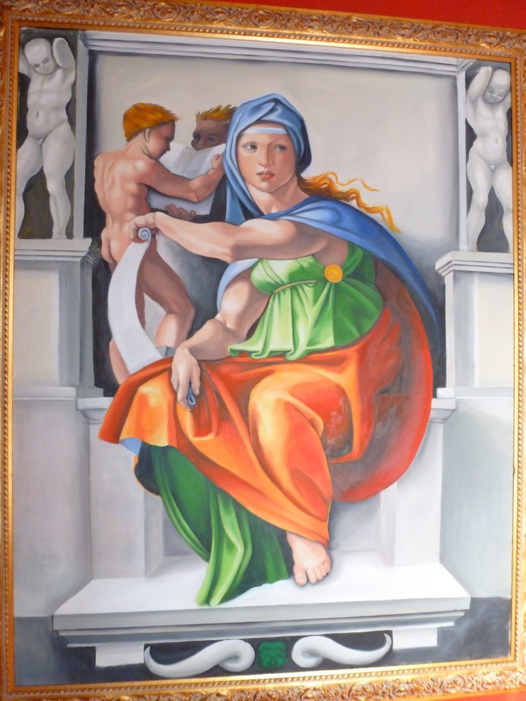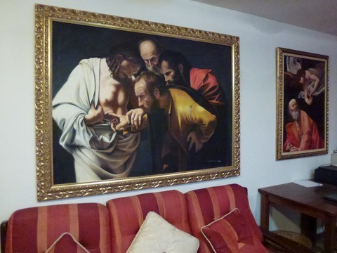 I decided to fill the house with life sized copies of my favourite paintings (mostly Italian artists!). This makes the house like and art gallery but where you can 'live' with the paintings, discuss them, get to know them well.