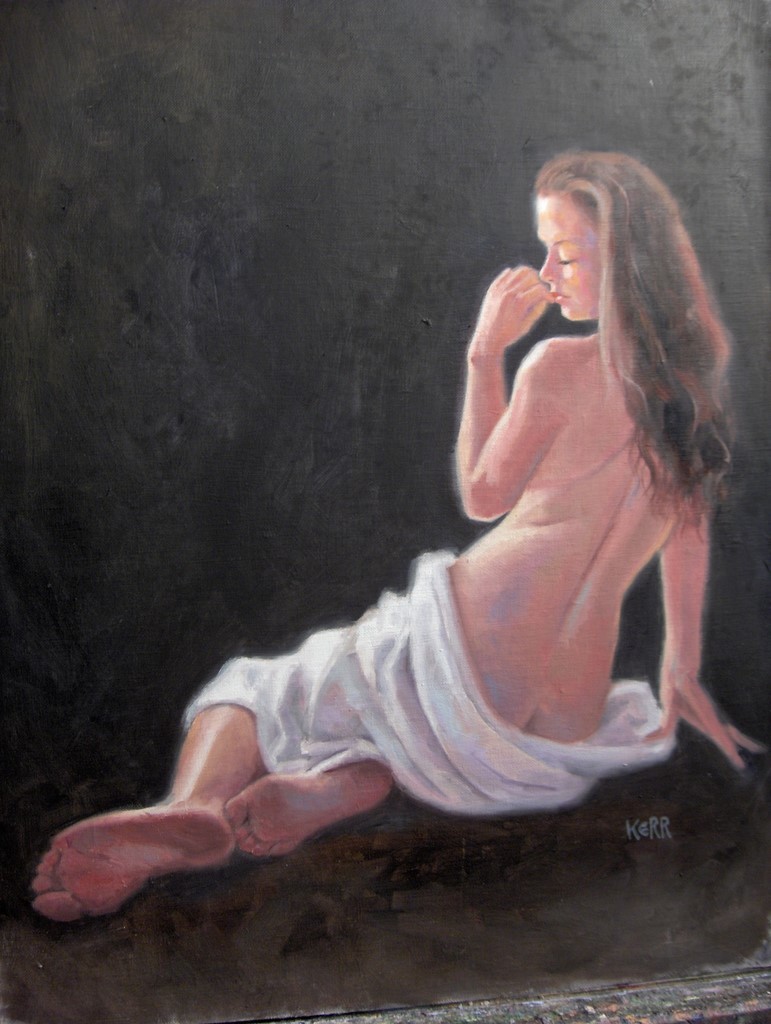 Life painting is one of the most challenging subjects and so attractive to me to 'hone my skills'. As usual I like to 'push' colour and not just make a photographic copy. I also like my paintings to look like real people!