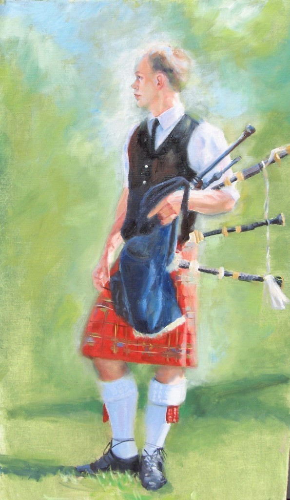 Potraits. My first love is portraits. I use heightened colours with accurate drawing to create likenesses which I hope captures the essense of the person.