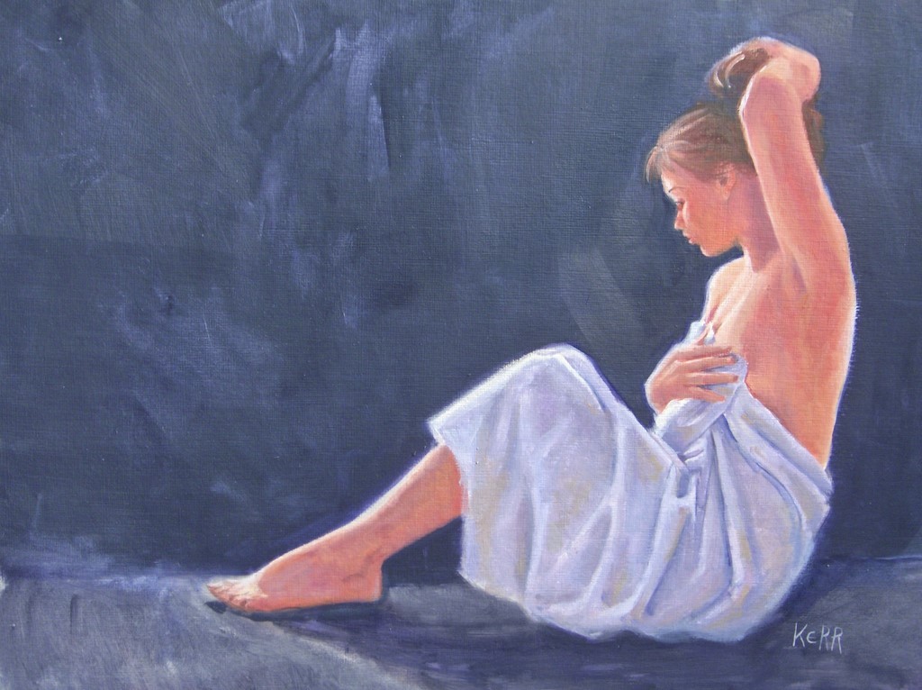 You'll see with the figure paintings I am often searching for hidden colours in the skin, in the shadows.... I'm looking for something which makes my paintings not just photographic copies but which enhances the physical image and tries to say something more about the mood of the person at that time.