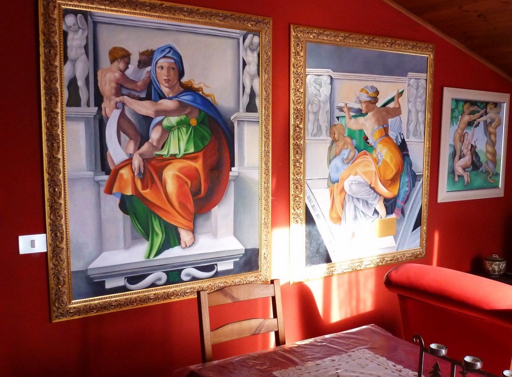 Over the years Pheona has made what is now quite a large collection of copied classical paintings throughout the house. There are alsoover a hundred of her original paintings so there is the feeling that you are actually living in an art gallery. The idea is that you are 'living' with these great works of art every day, understanding them and discussing them.
