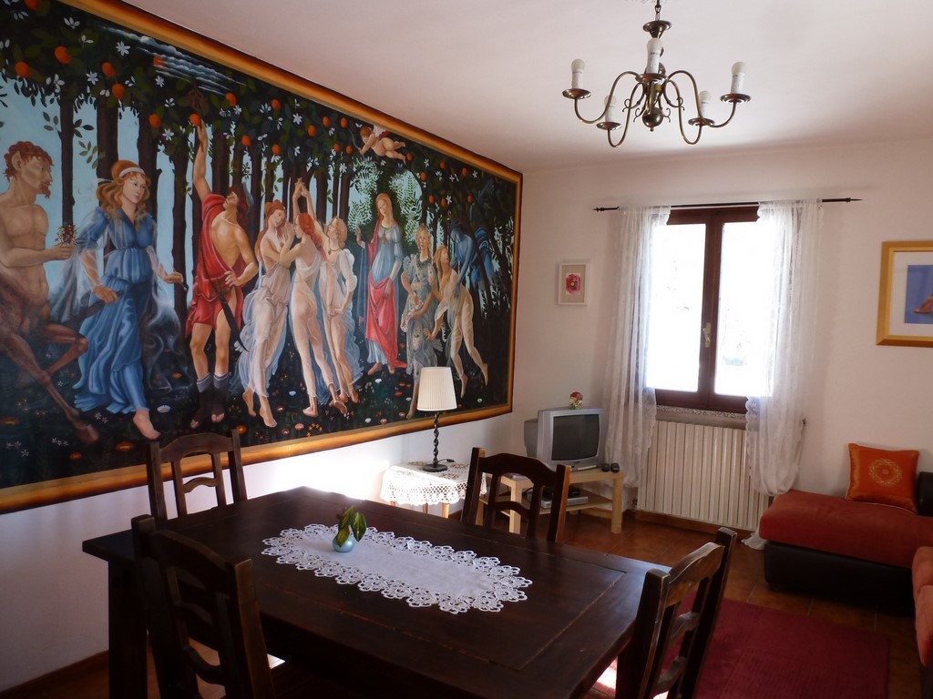 The first floor is called 'Apartamento Botticelli' as it has a mural (2m x 4m) of Botticelli's 'Primavera' in the lounge. A unique chance to live with, and get to know, this wonderful painting. The original is in the Uffizzi in Florence and the mural is the same size as the original.
